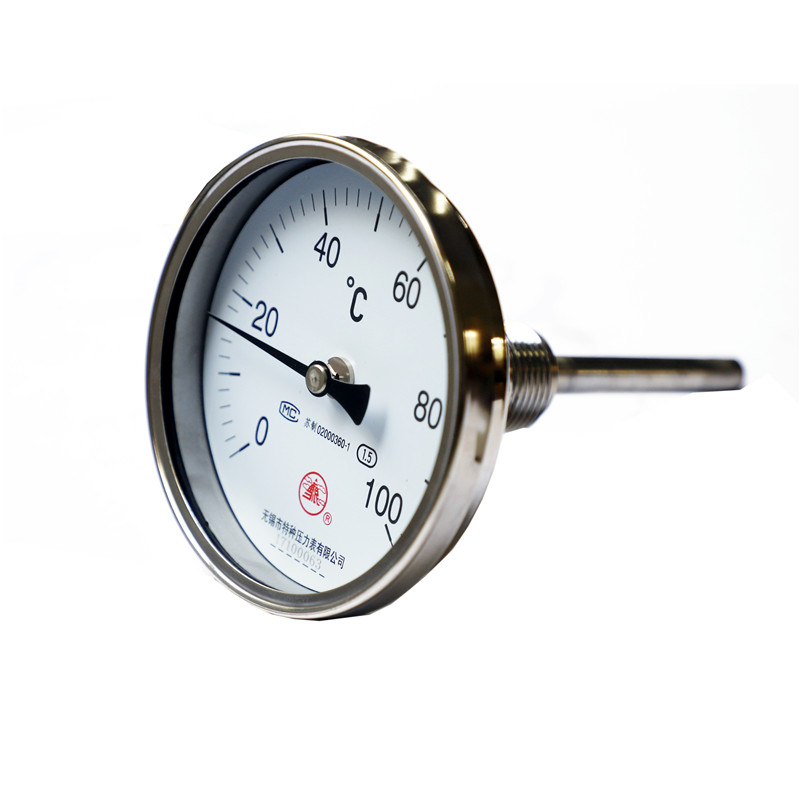 雙金屬溫度計適用于中低溫現場檢測,可直接測量液體、氣體和蒸汽的溫度,具有無汞害、指示清晰,堅固、耐振。儀表全部采用不銹鋼