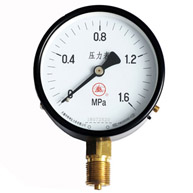 普通壓力表又可以稱作波登管壓力表, 壓力表通過表內的敏感元件波登管的彈性形變,再由表內機芯的轉換機構將壓力形變傳導至指針,引起指針轉動來顯示壓力。普通壓力表適用測量無爆炸,不結晶,不凝固,對銅和銅合金無腐蝕作用的液體、氣體或蒸汽的壓力及真空。廣泛應用于石油、化工、冶金、液壓機械等工業過程壓力測量。