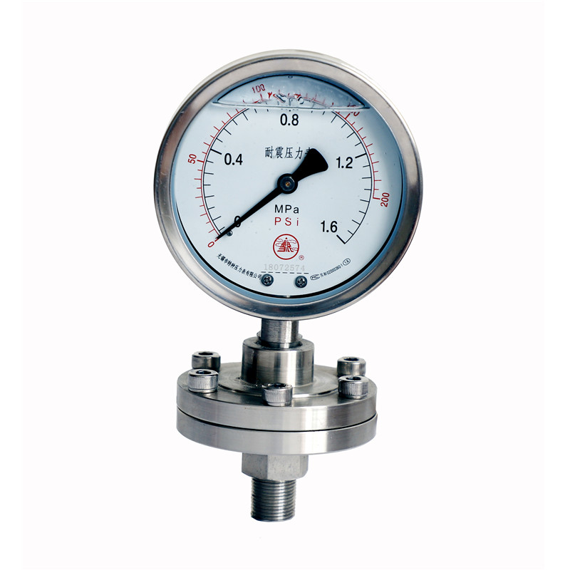 螺紋連接隔膜壓力表采用間接測量結構,用隔離膜片將被測介質與敏感元件隔開,與設備采用螺紋連接,適用于測量強腐蝕、高溫、高粘度、易結晶、易凝固、有固體浮游物的介質壓力以及必須避免測量介質直接進入通用型壓力儀表和防止沉淀物積聚且要易清洗的場合。