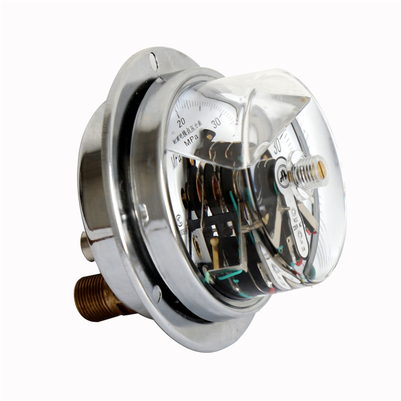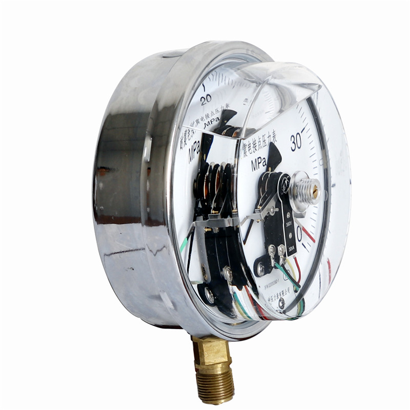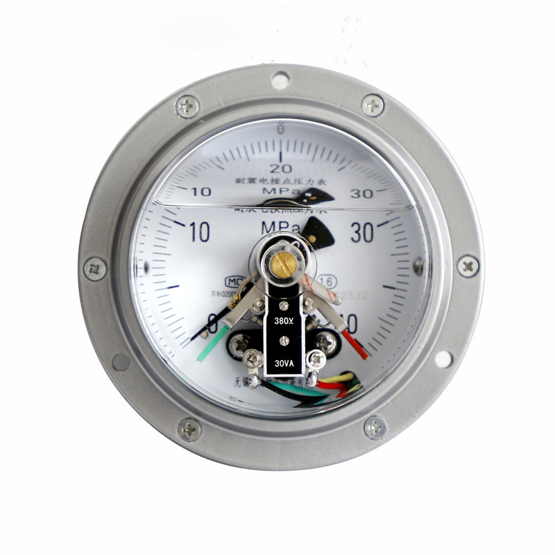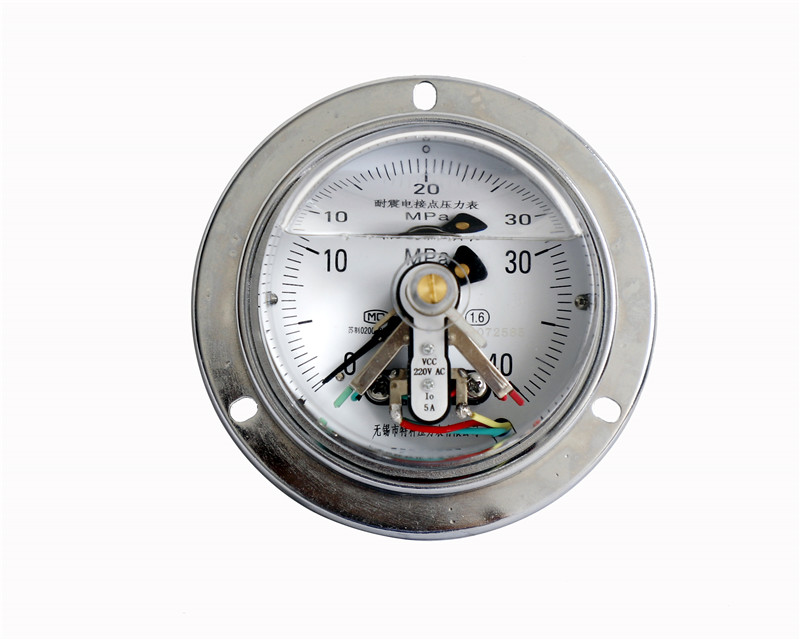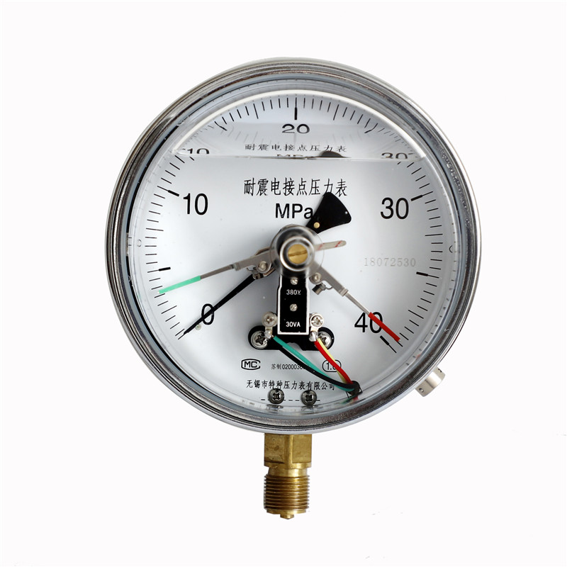 耐震電接點(diǎn)壓力真空表具有抗介質(zhì)脈動(dòng)和沖擊載荷,耐環(huán)境振動(dòng)等優(yōu)異特性,適用測(cè)量對(duì)銅和銅合金無腐蝕性的氣體,液體或蒸汽等壓力或真空度,一只表可同時(shí)測(cè)量壓力和真空。儀表設(shè)上、下限二位開關(guān)型接點(diǎn)裝置(可選雙上限或雙下限接點(diǎn)裝置),在壓力達(dá)到設(shè)定值時(shí)發(fā)出信號(hào)或通斷控制電路,供作業(yè)系統(tǒng)自動(dòng)控制或發(fā)訊用。其抗振結(jié)構(gòu)可有效抑制指針的抖動(dòng)、沖擊,保護(hù)接點(diǎn),使儀表指示清晰,電信號(hào)切換可靠,工作穩(wěn)定。廣泛應(yīng)用于機(jī)械、化工、石油、冶金、電力等工業(yè)生產(chǎn)過程壓力測(cè)量和控制。本公司可根據(jù)用戶需要,設(shè)計(jì)、制造特殊用途的耐震電接點(diǎn)壓力真空表產(chǎn)品,歡迎來人來電、來函洽談!