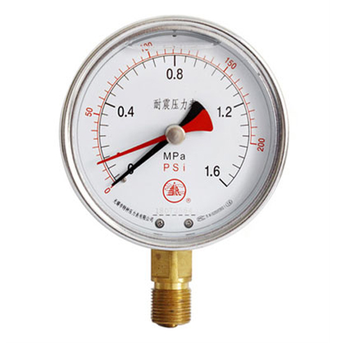 記憶型壓力表是由通用型壓力表(普通壓力表,耐震壓力表,不銹鋼壓力表等)與一個記憶裝置配接組成。記憶性壓力表的特點是可以在無人的情況下,如實記錄下測量現(xiàn)場所發(fā)生的最高壓力值。